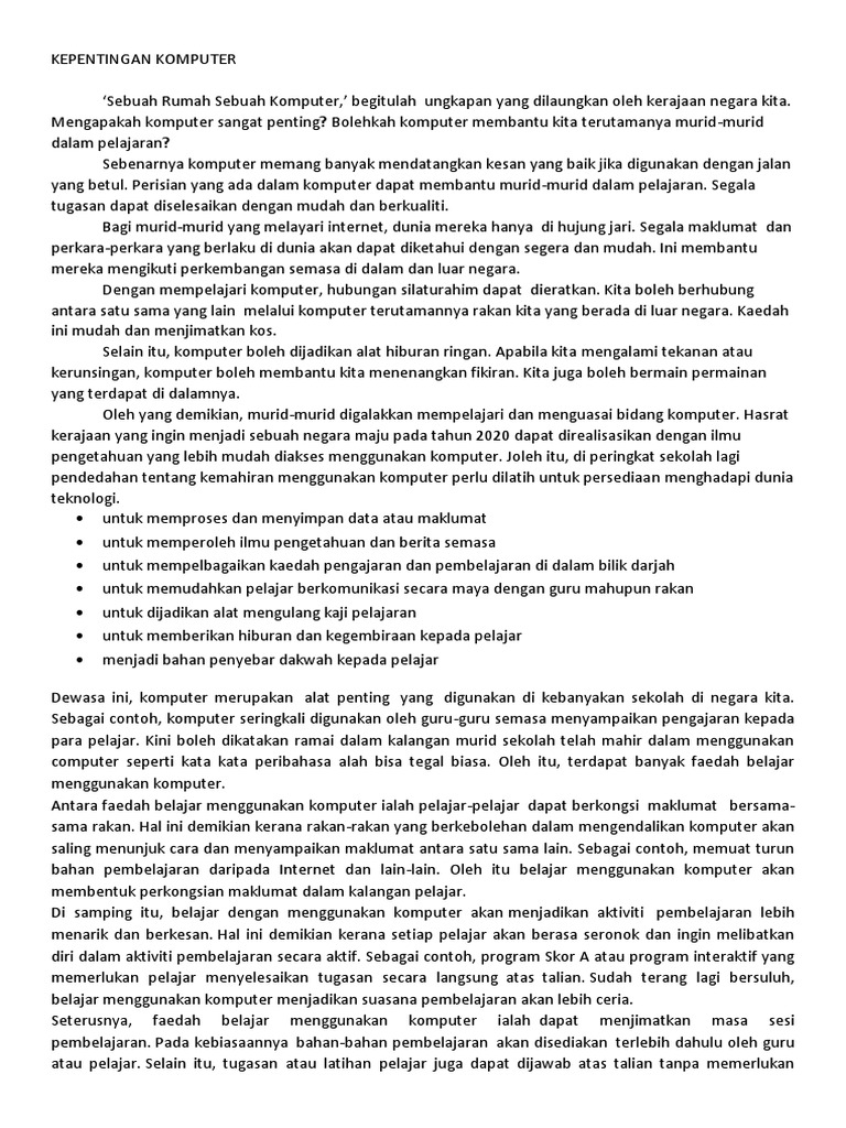 Karangan Fakta Kepentingan Komputer Pdf